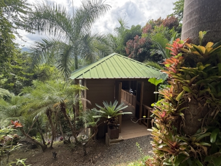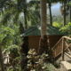 Surrounded by palms, mango trees and lush tropical plants, La Cara de Indio (The Indian Face) is named after a Taino petroglyph. The treehouse features 144 square feet of interior space and an 84-square-foot balcony overlooking a panorama of El Yunque rainforest. Below the main level and reached by a short path from the entry is a 90-square-foot, private bath that offers a slate interior, high-end fixtures and a rain shower with a similar view of the rainforest.